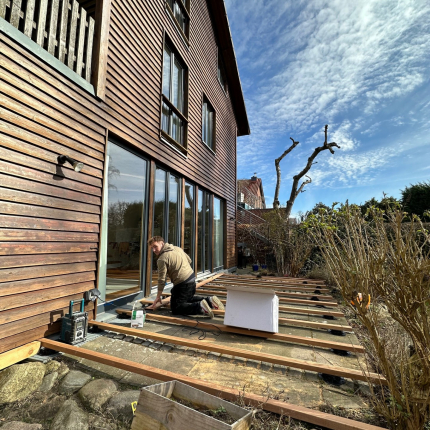 Holz, WPC und Stein bieten unterschiedliche Eigenschaften, die wir gezielt für dein Projekt einsetzen. Jedes Material wird nach Qualität, Struktur und Haltbarkeit ausgewählt, damit die Terrasse den täglichen Belastungen standhält. So entsteht eine Oberfläche, die funktional bleibt und optisch überzeugt.